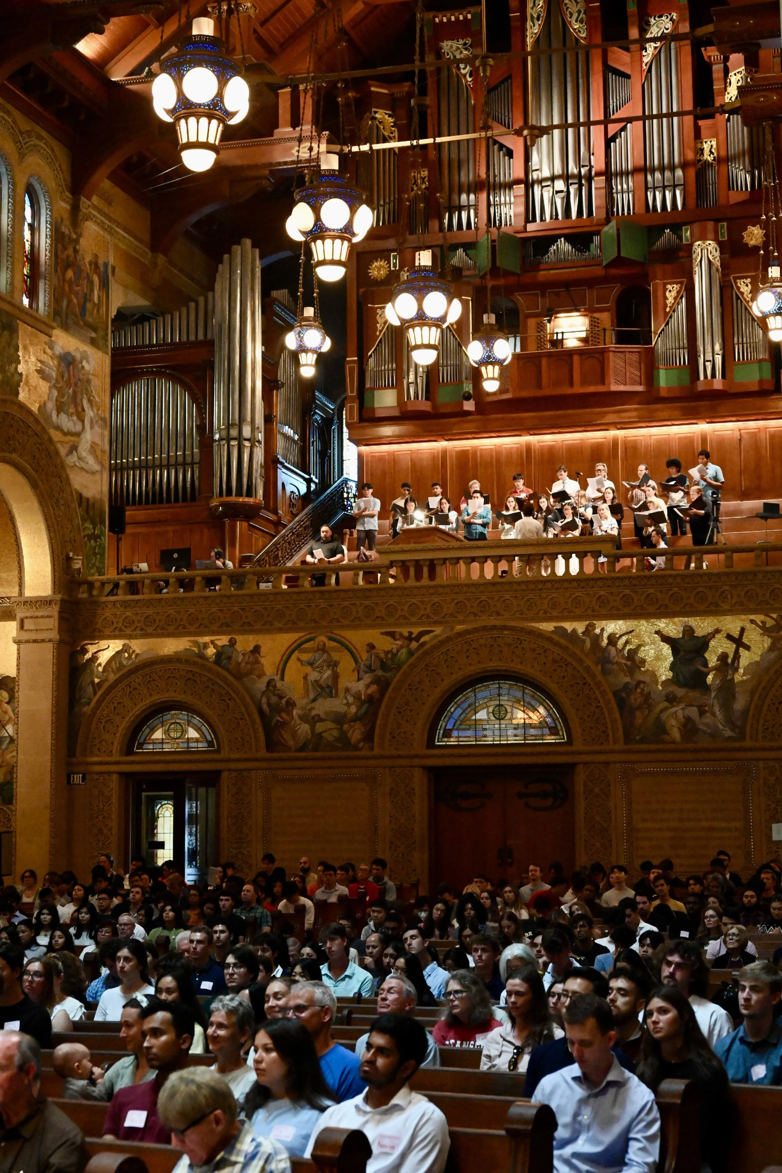 Our choir provides musical leadership for the 4:30 pm Mass; they rehearse on Sundays at 2:30 pm in Braun Music Center, Room 103. For the 9:00 am and 9:00 pm Masses, cantors lead the music; rehearsals for hymns and Mass settings take place in Memorial Church one hour before each Mass begins.